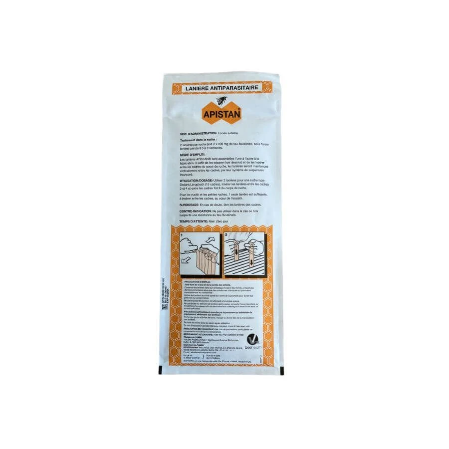 Un sachet contient 10 lanières pour cinq ruches.