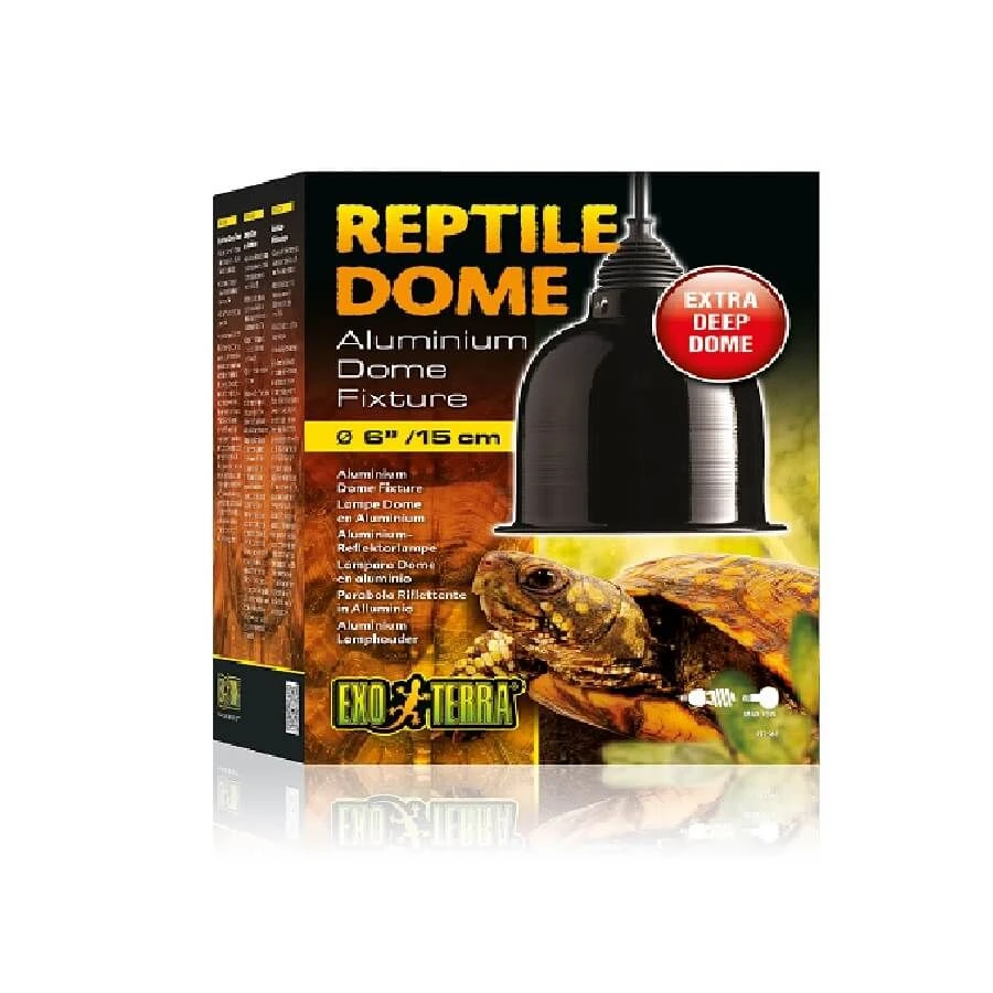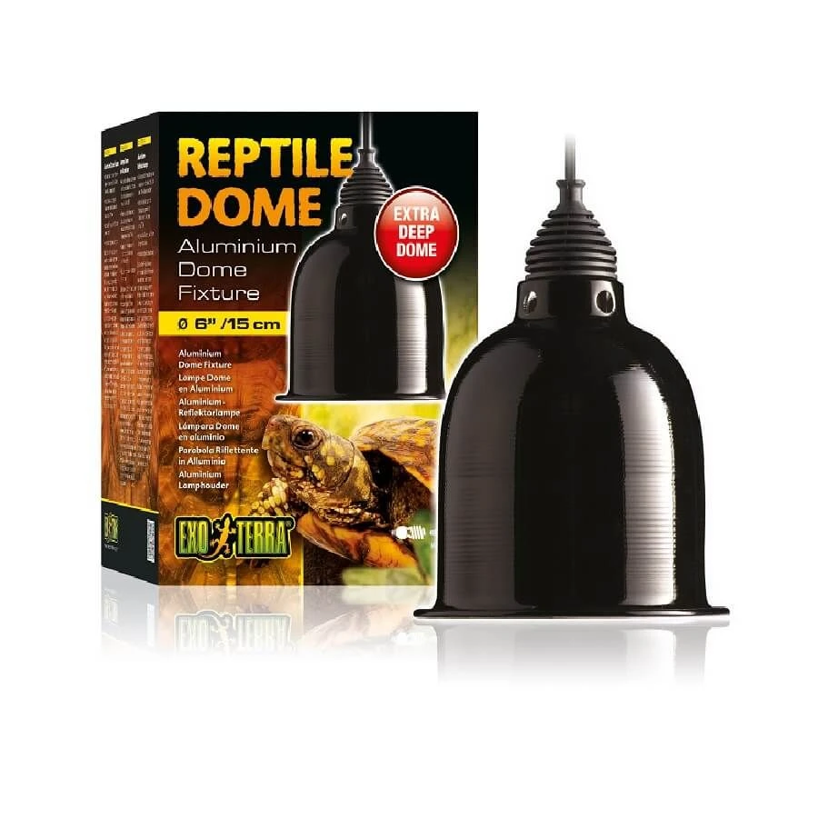 Cette lampe dôme de chez Exo Terra pour terrariums est munie d’un réflecteur aluminium en forme de dôme très long qui dépasse la surface de la plupart des ampoules.