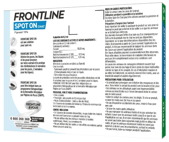 Les pipettes FRONTLINE Spot-on sont des solutions anti-puces et anti-tiques pour chat. Economiques et efficaces, les pipettes éliminent les puces, les tiques et les poux broyeurs.