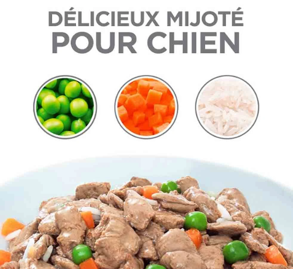 - Une variété et une texture parfaites pour séduire les chiens les plus exigeants. Associez ce Mijoté appétissant aux croquettes Hill’s Science Plan pour faire plaisir à votre chien.