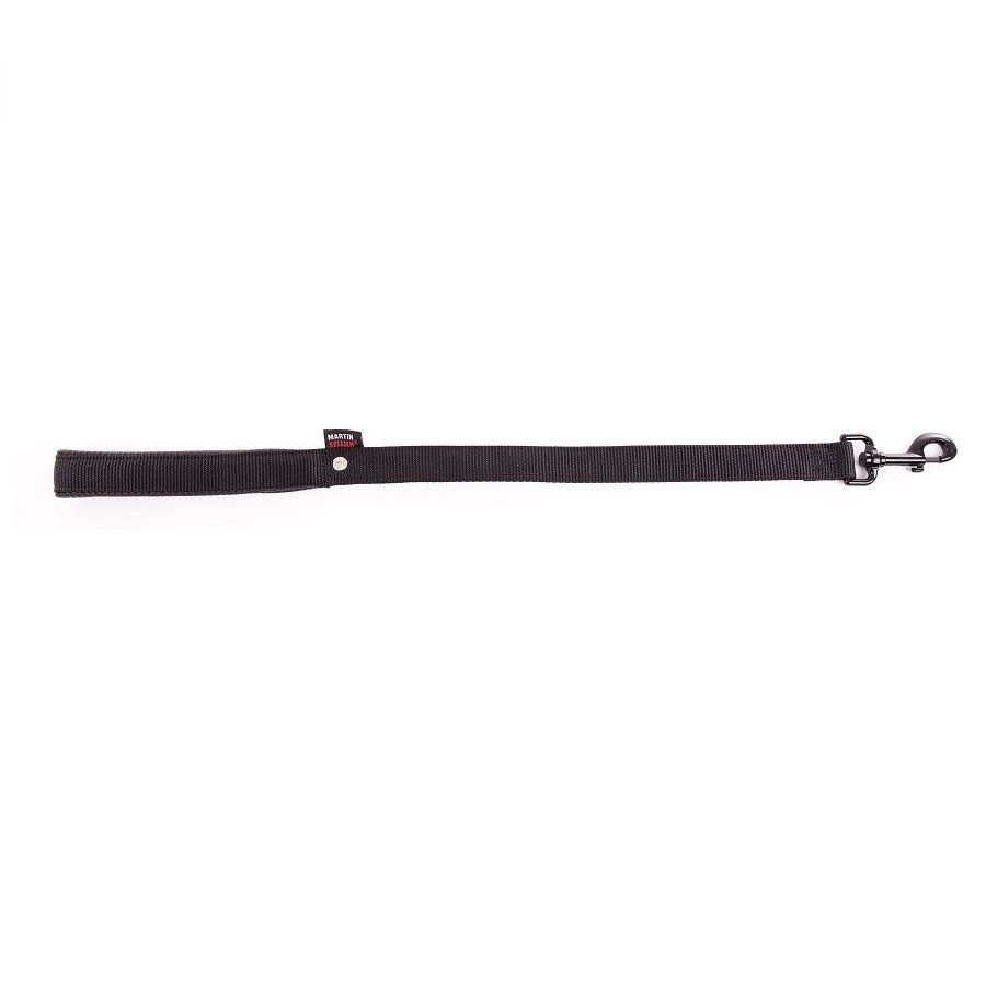 Cette laisse double Ă©paisseur Martin Sellier est sobre, en effet, elle est en nylon noir uni et le mousqueton carabine est laquĂ© noir.Â