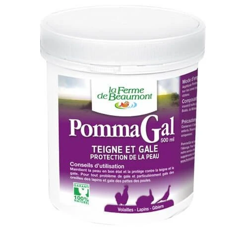 Maintient la peau en bon état et la protège contre la teigne et la gale. Pour tout problème de gale et particulièrement gale des oreilles des lapins et gale des pattes des poules. La gale des pattes des volailles et celle des oreilles des lapins sont très courantes. Causées par des acariens, elles se présentent sous forme de croûtes blanches et provoquent des rougeurs et douleurs aux animaux. Bénignes au départ, elles peuvent provoquer des troubles graves si elles ne sont pas prises en compte.