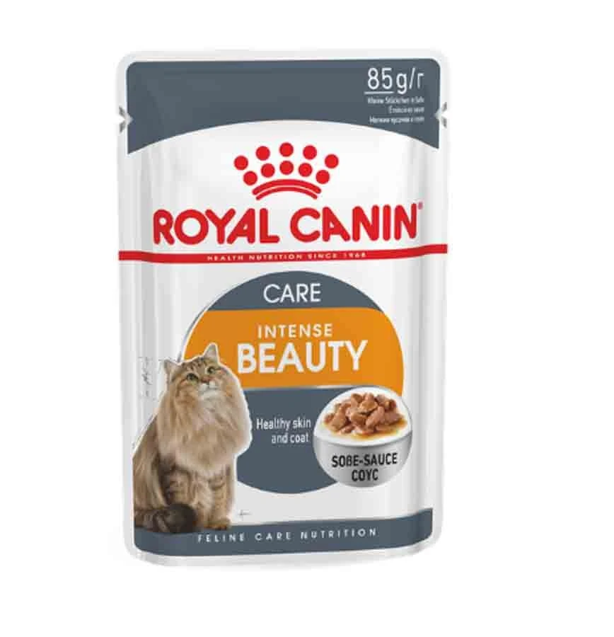 Royal Canin Féline Care Nutrition Intense Beauty est un savoureux repas en sauce pour les chats adultes pour maintenir la beauté du pelage avec des oméga 3 et oméga 6.